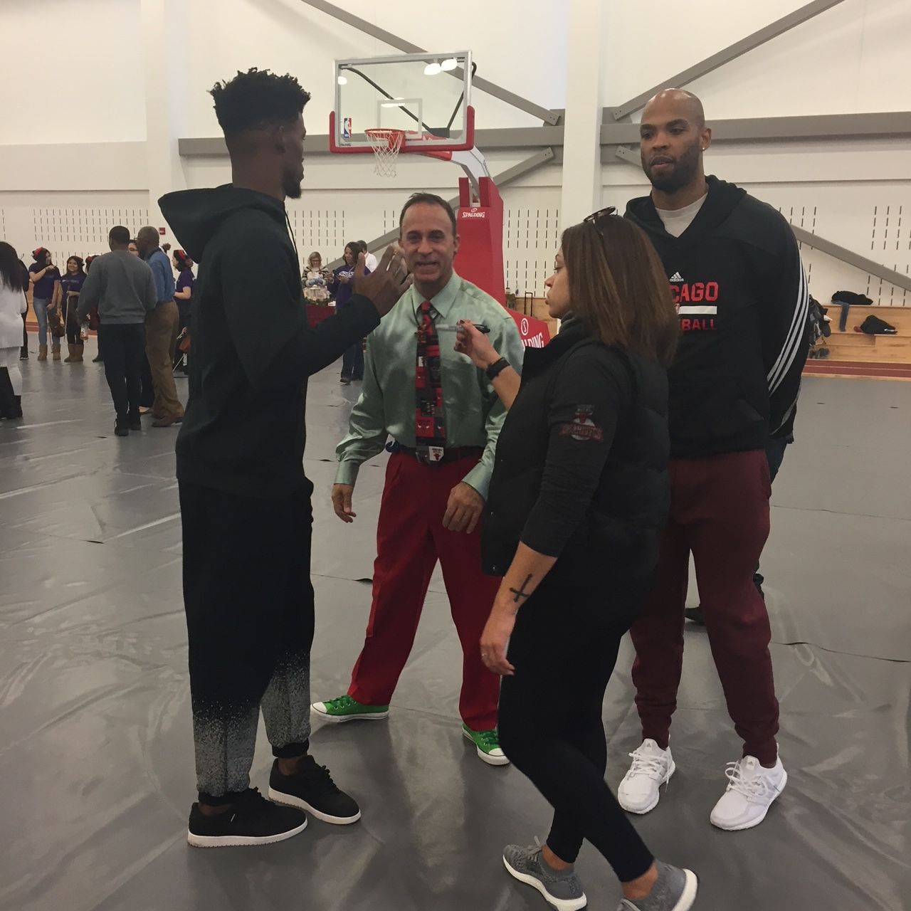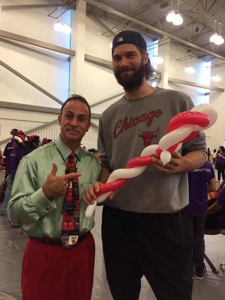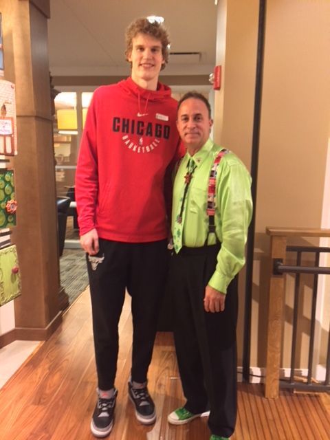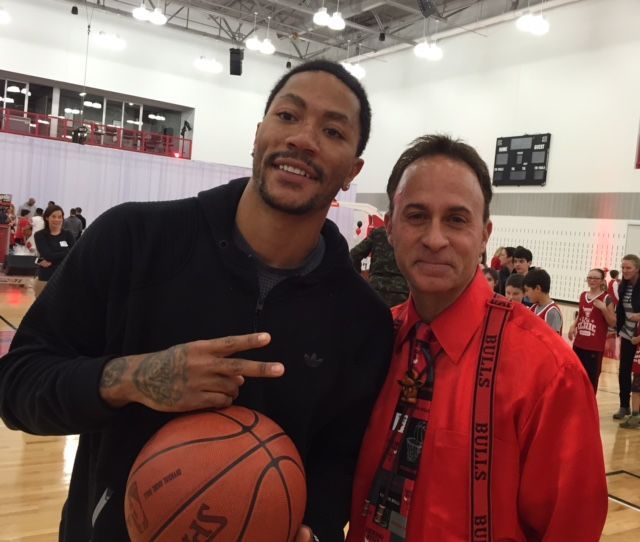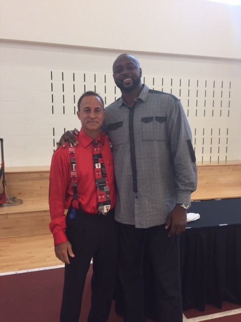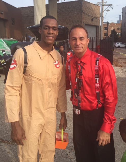 Dave working along side Derrick Rose, former Chicago Bull, at a Chicago Bulls Kid Nation event at the Advocate Center